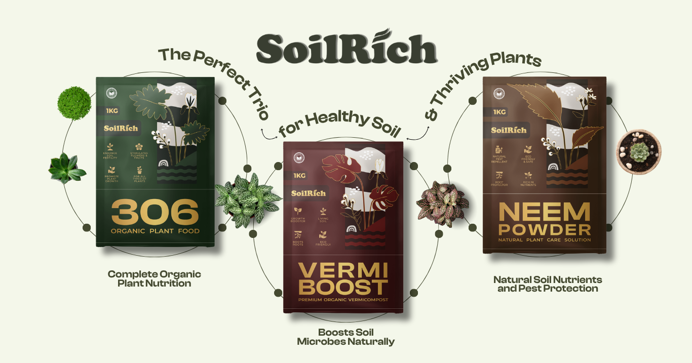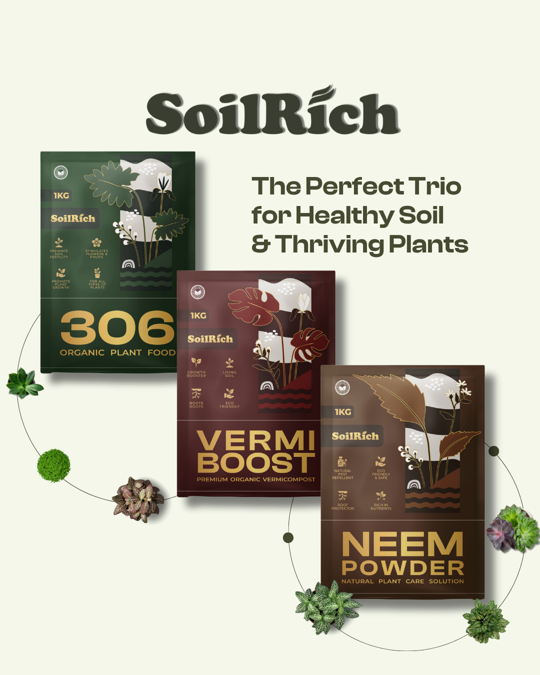SoilRich 306 is a 100% organic plant food enriched with cocopeat that improves soil fertility, structure, and nutrient content. It promotes healthy plant growth, flowering, and fruiting with essential macro and micronutrients.